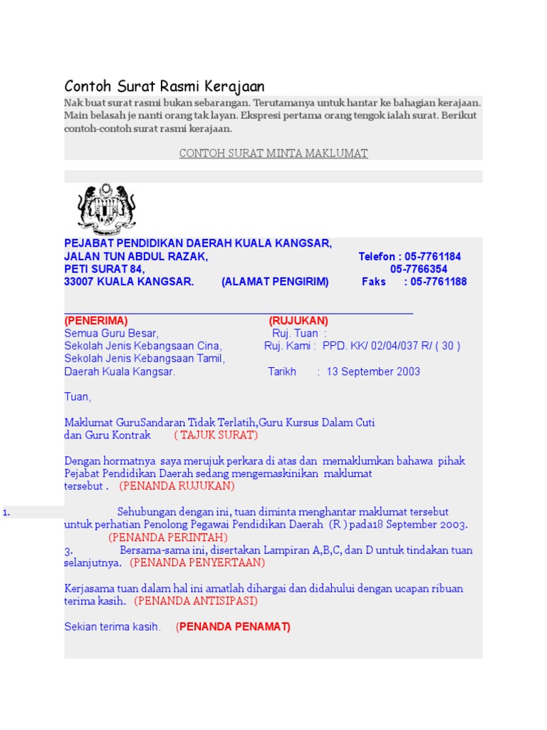 Standard operasi prosedur perintah kawalan pergerakan negeri sembilan penyelesaian isu penjaja oleh kerajaan negeri sembilan Lazimnya, surat kiriman rasmi dalam agensi kerajaan dihantar untuk menyampai atau mendapatkan maklumat, arahan, tindakan dan keputusan. Font untuk surat rasmi kerajaan. Pakatan hilang kuasa di perak « pendapat kritis via. Surat rasmi untuk sewa tanah, surat rasmi kerajaan, surat rasmi tidak hadir sekolah, surat rasmi contoh, surat rasmi penghentian sekolah, contoh surat rasmi memohon kebenaran, template surat.